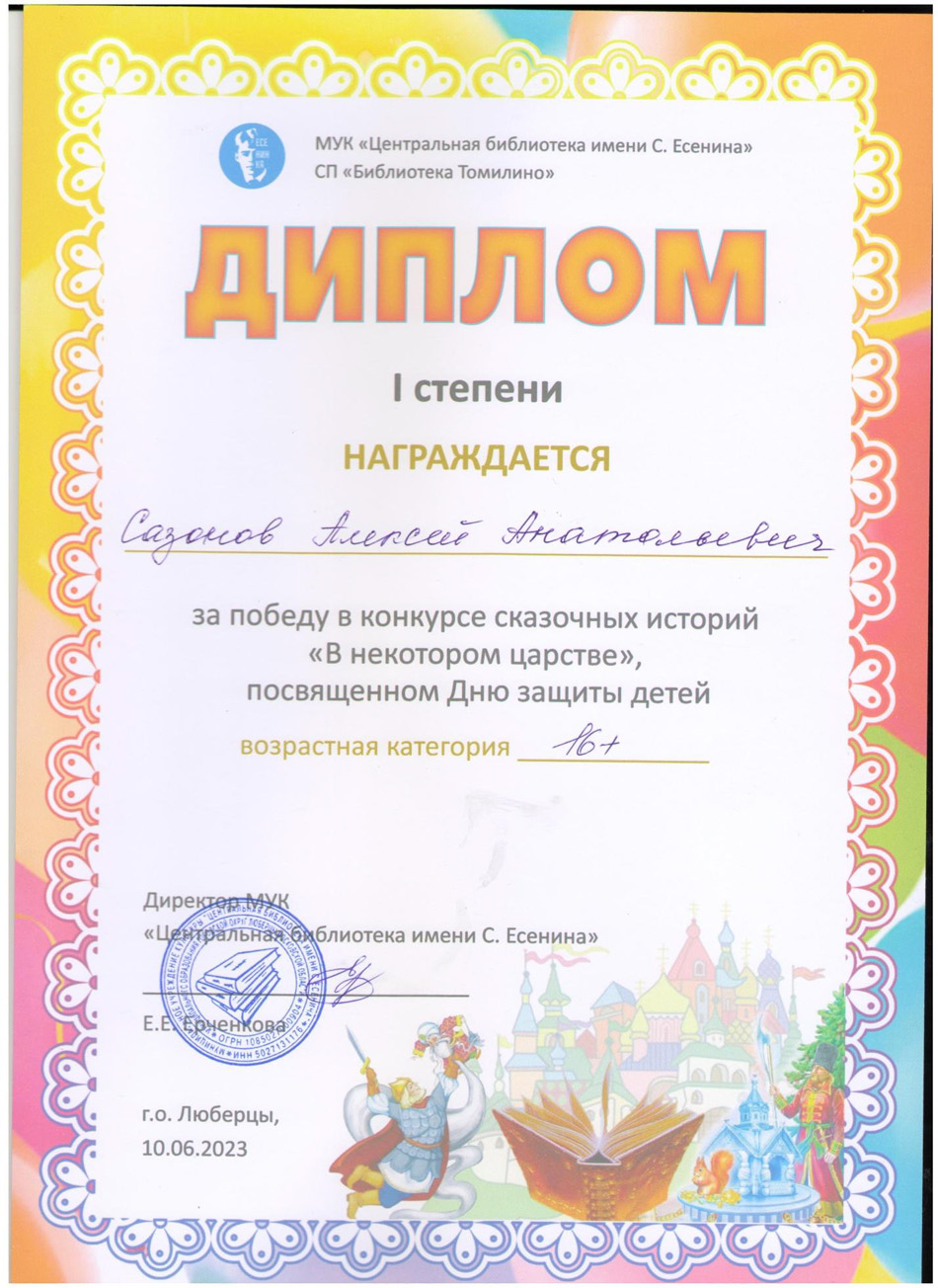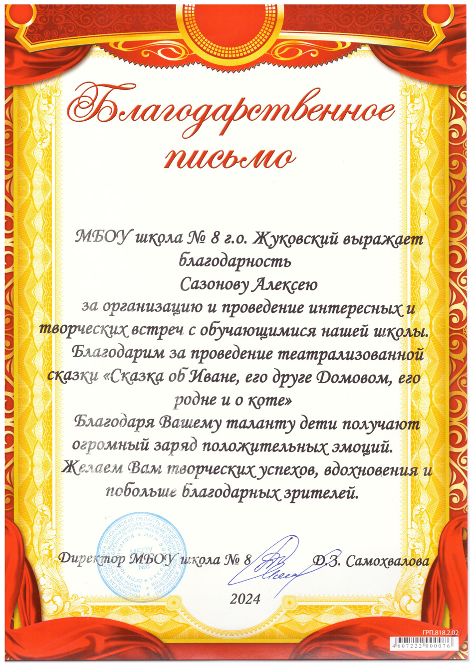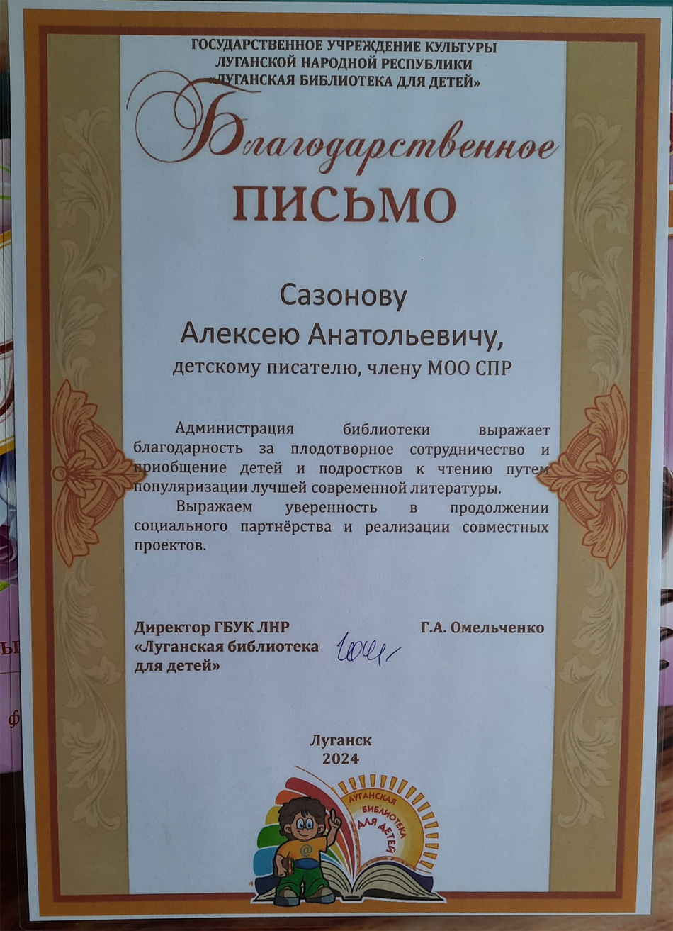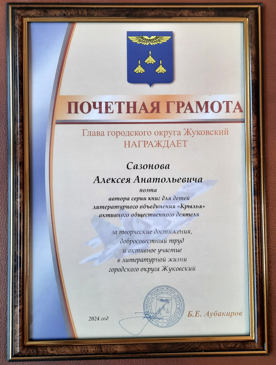 Благодарственные письма и награды Сазонова Алексея Анатольевича
