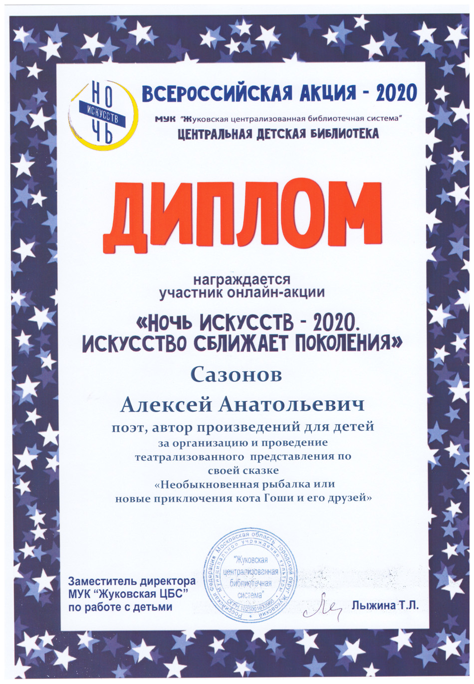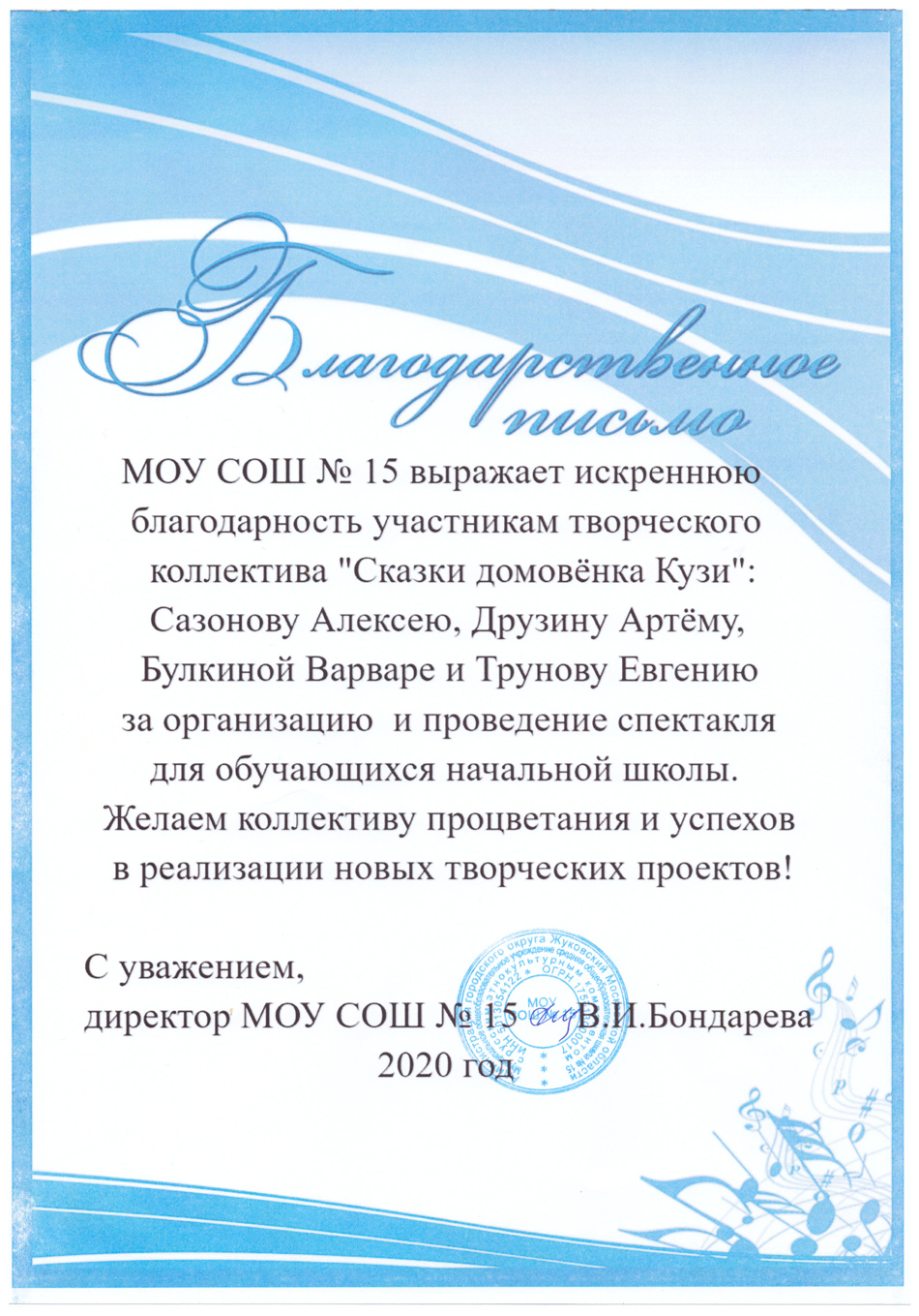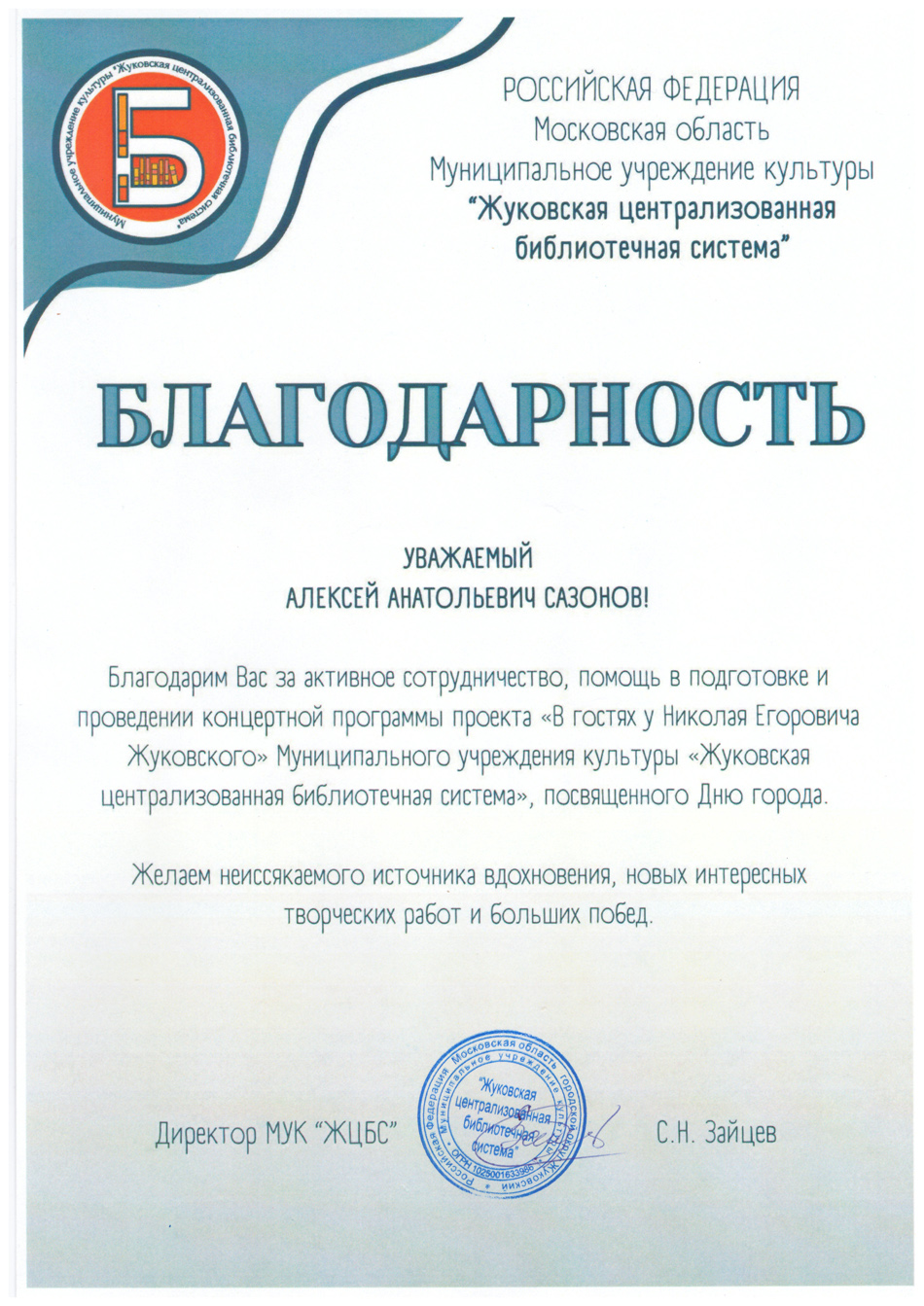 Благодарственные письма и награды Сазонова Алексея Анатольевича